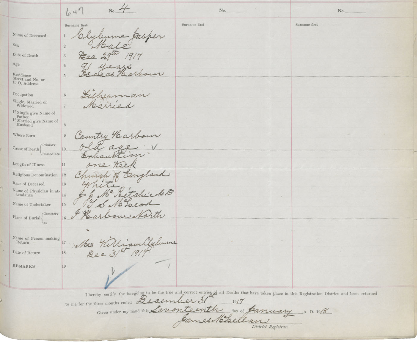 Male Death Registration: Year: 1917 book: 38 page: 331 number: 647