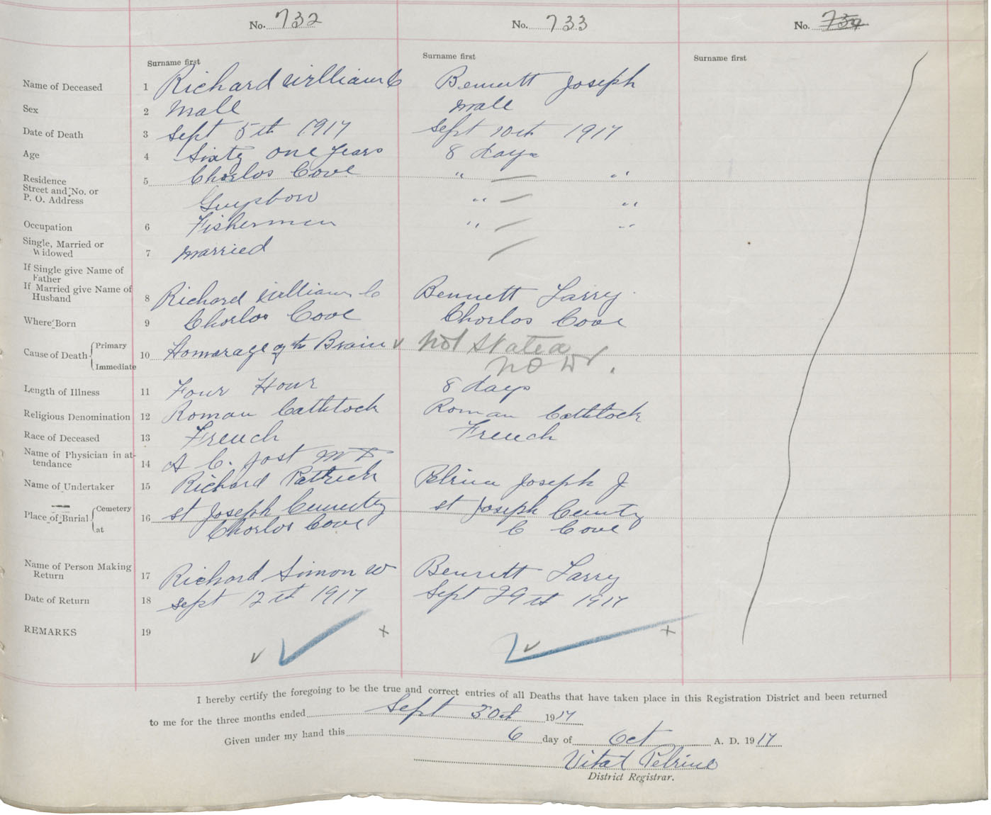 Male Death Registration: Year: 1917 book: 38 page: 383 number: 732