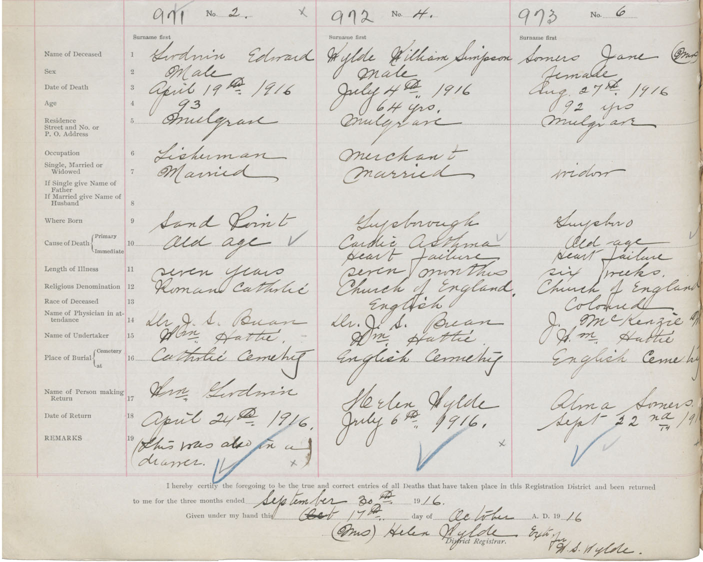 Male Death Registration: Year: 1916 book: 38 page: 524 number: 971