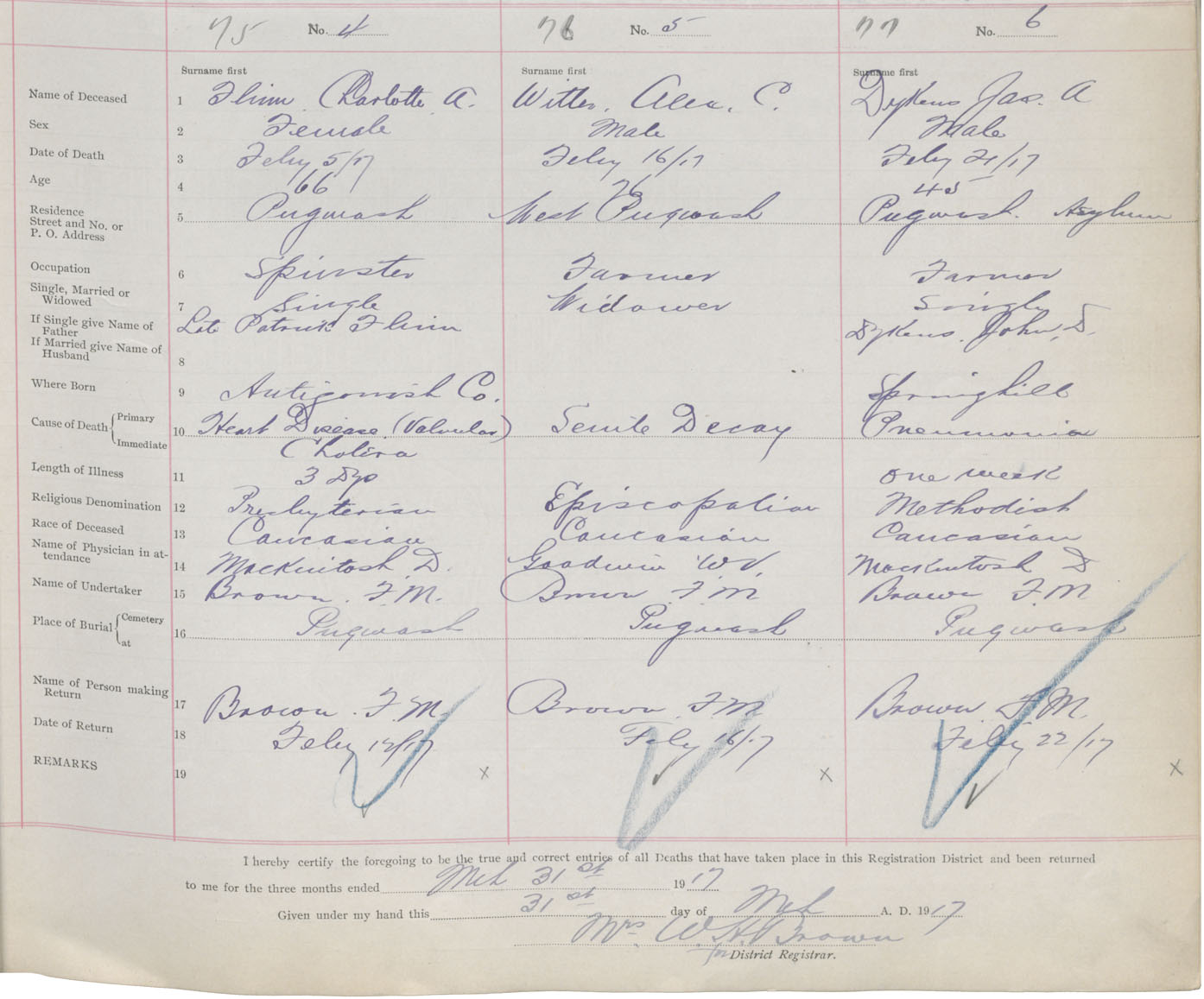 Female Death Registration: Year: 1917 book: 39 page: 17 number: 75