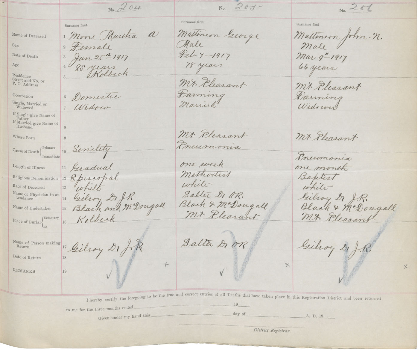 Female Death Registration: Year: 1917 book: 39 page: 51 number: 204