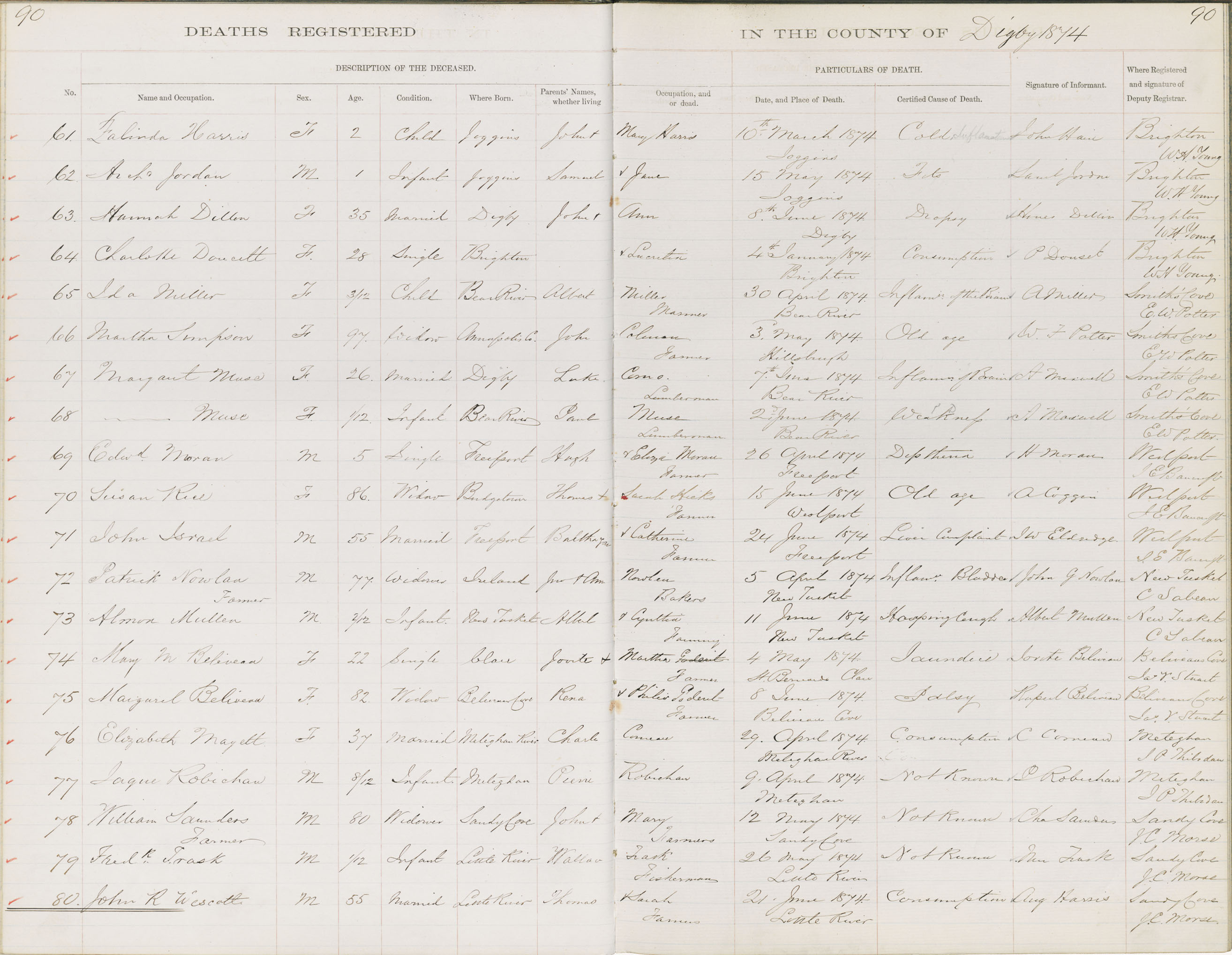 Death Registration: Year: 1874 book: 1806 page: 90 number: 61