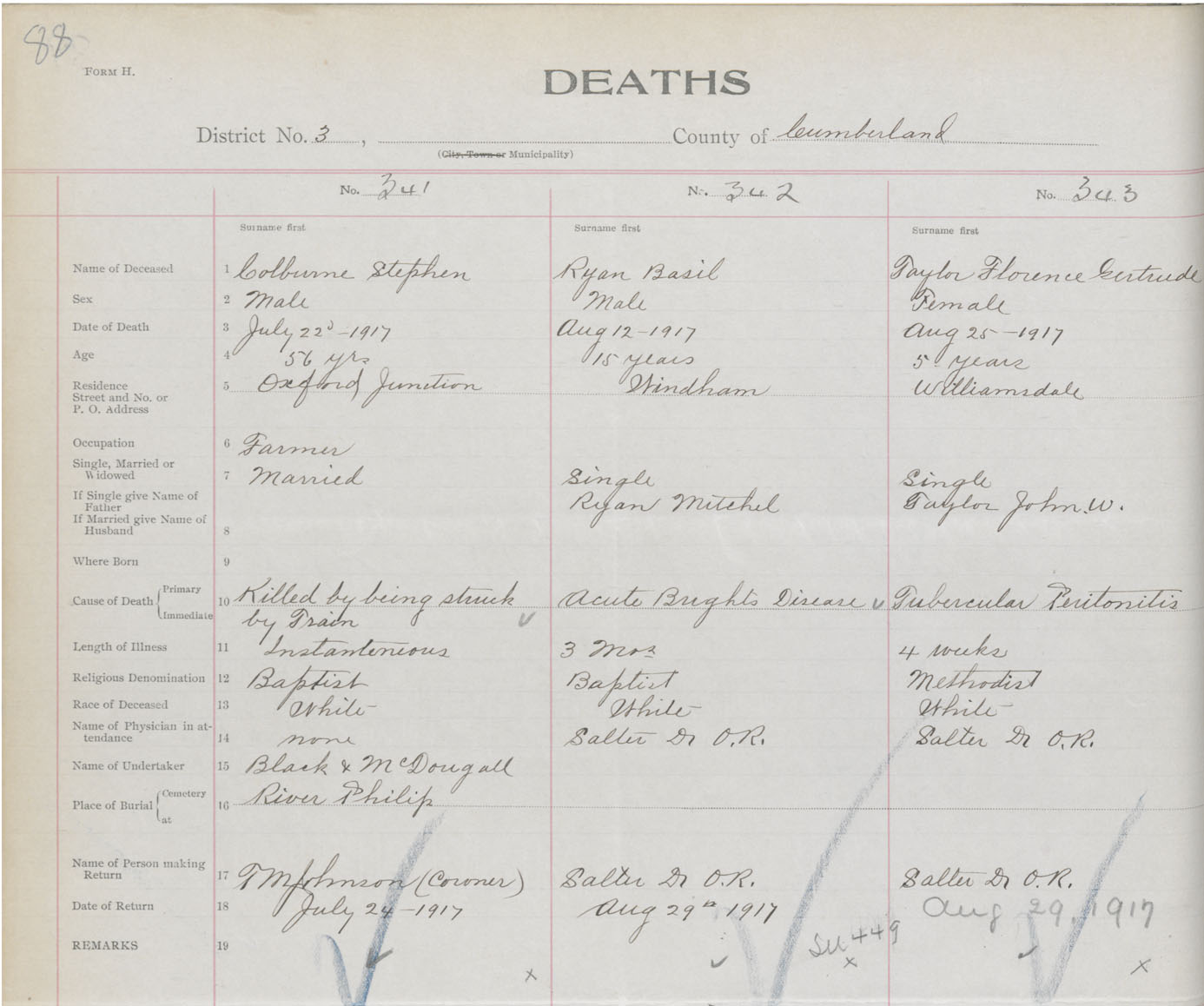 Female Death Registration: Year: 1917 book: 39 page: 88 number: 343