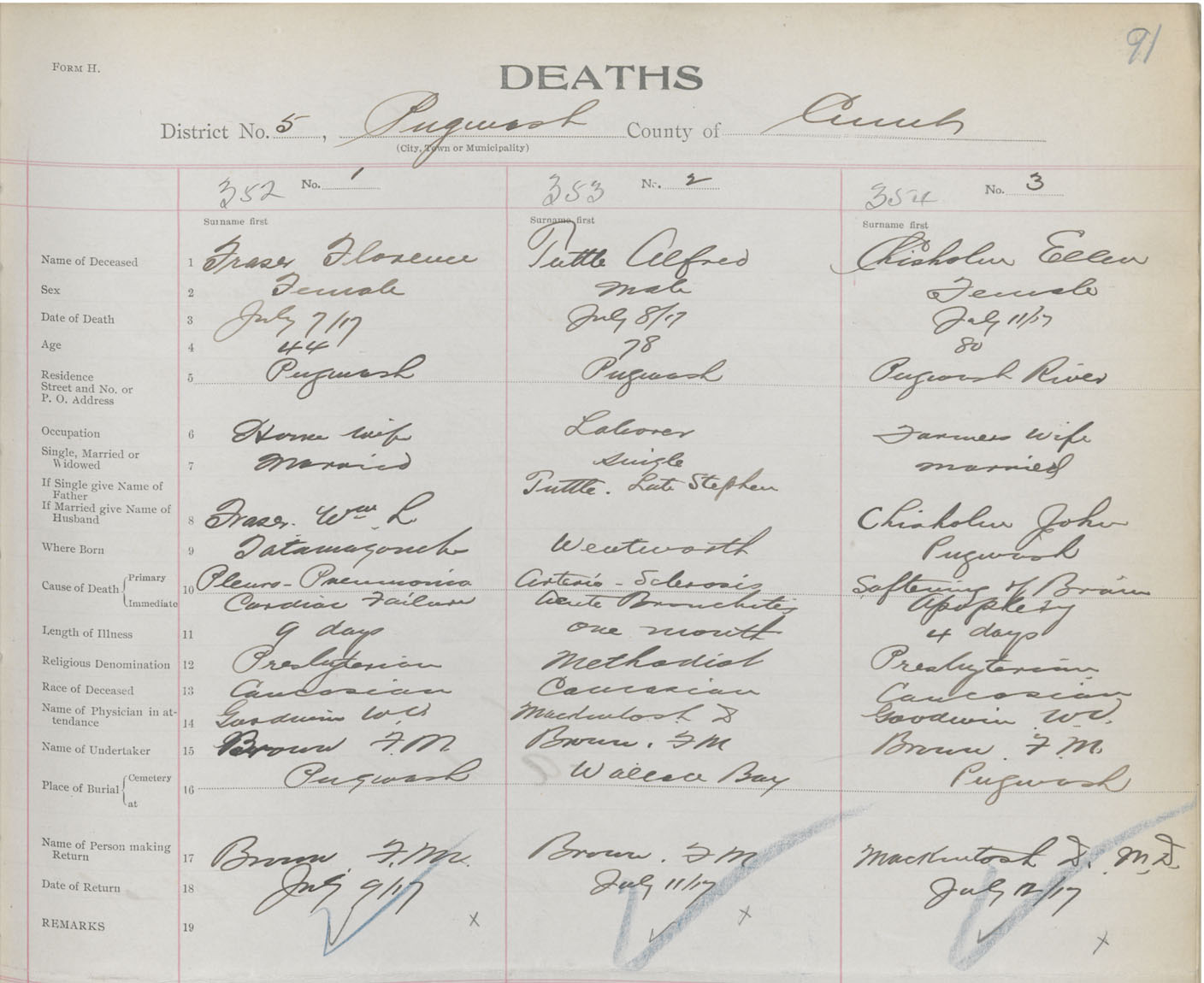 Female Death Registration: Year: 1917 book: 39 page: 91 number: 354
