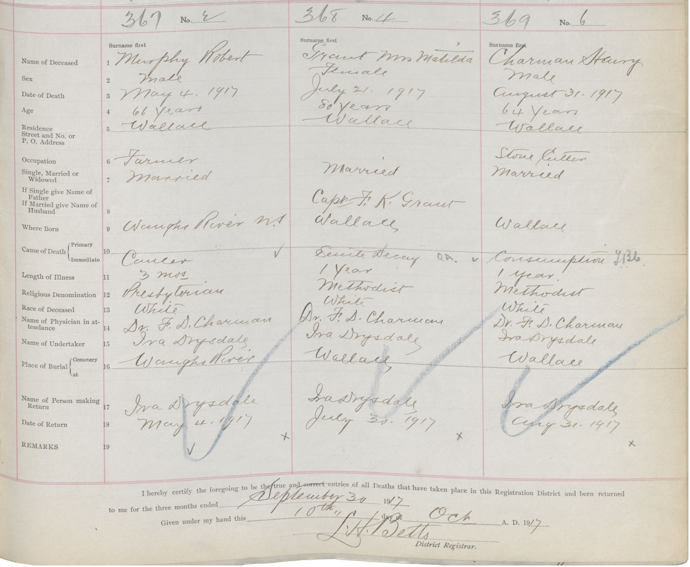 Male Death Registration: Year: 1917 book: 39 page: 95 number: 369