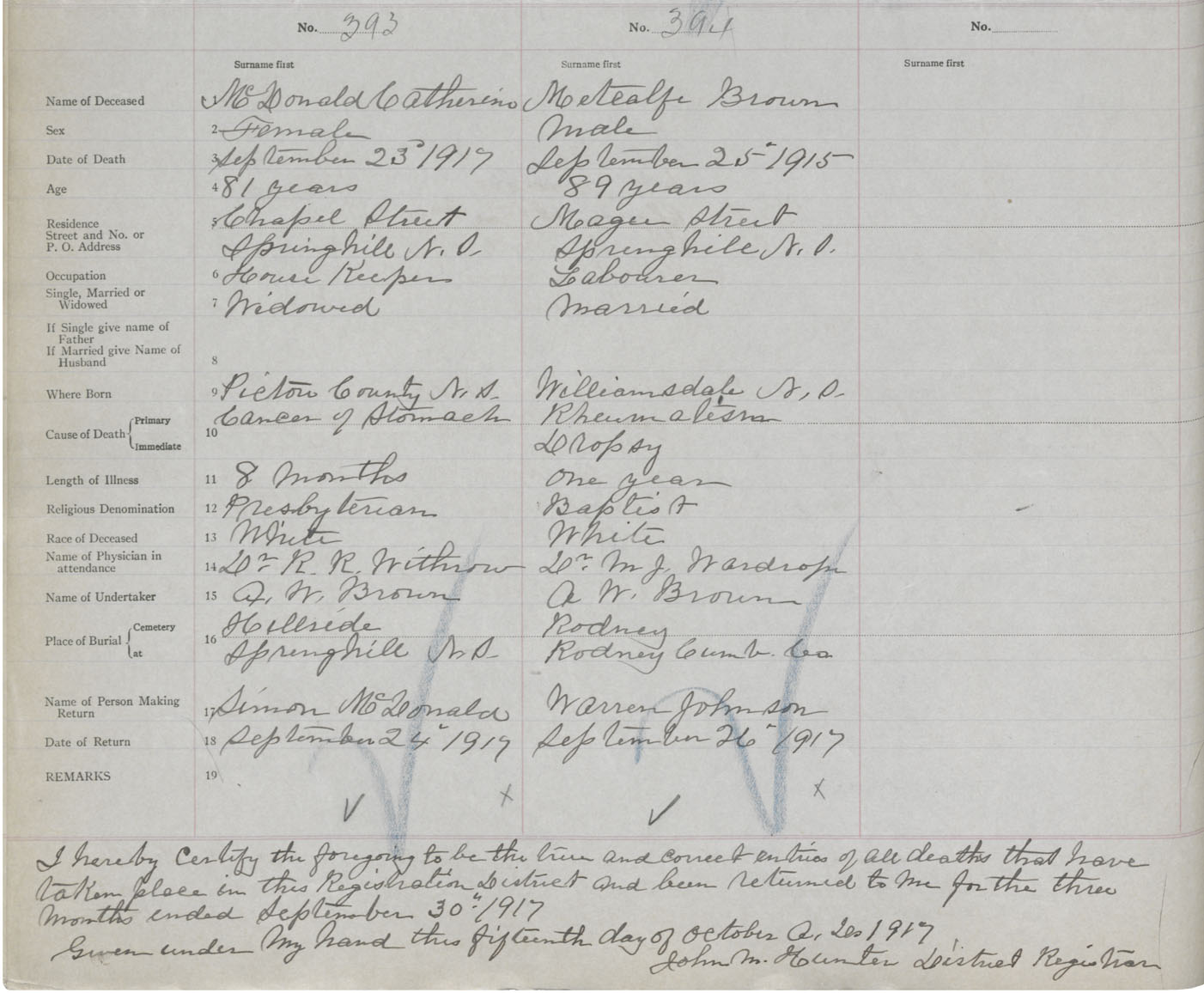 Male Death Registration: Year: 1917 book: 39 page: 100 number: 394