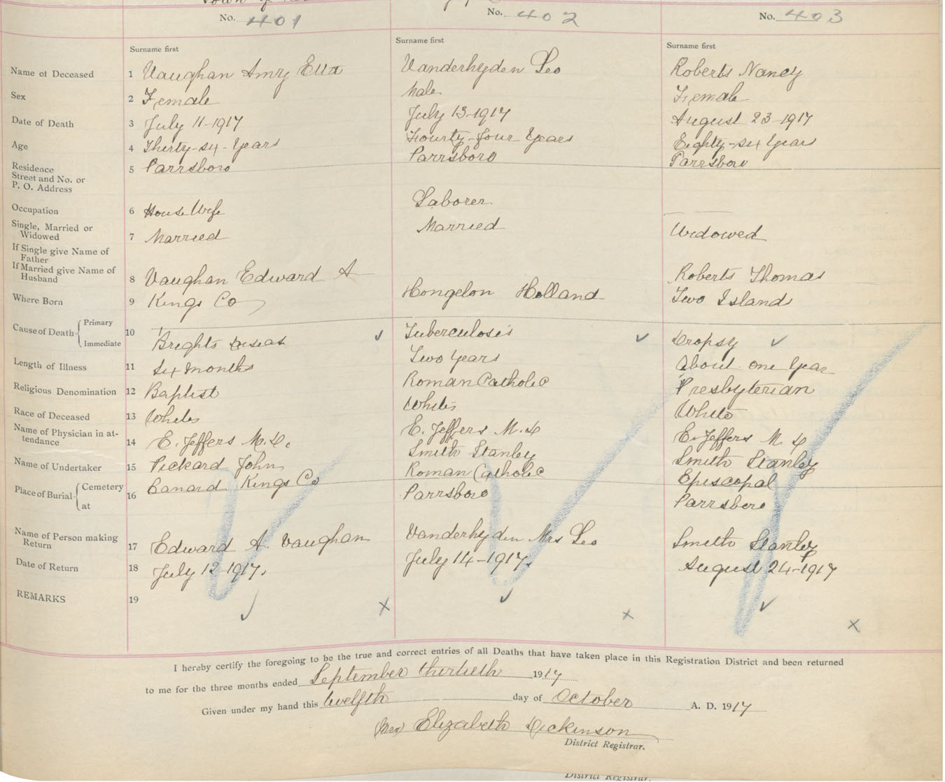 Female Death Registration: Year: 1917 book: 39 page: 103 number: 403