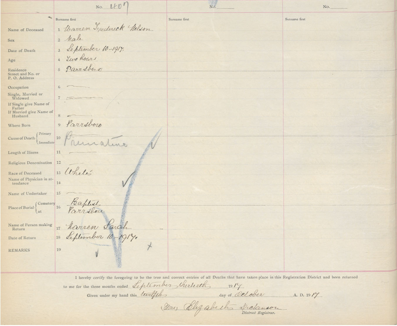 Male Death Registration: Year: 1917 book: 39 page: 104 number: 407