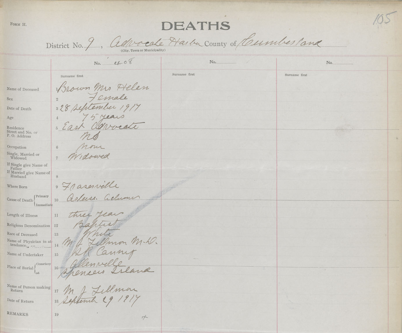 Female Death Registration: Year: 1917 book: 39 page: 105 number: 408