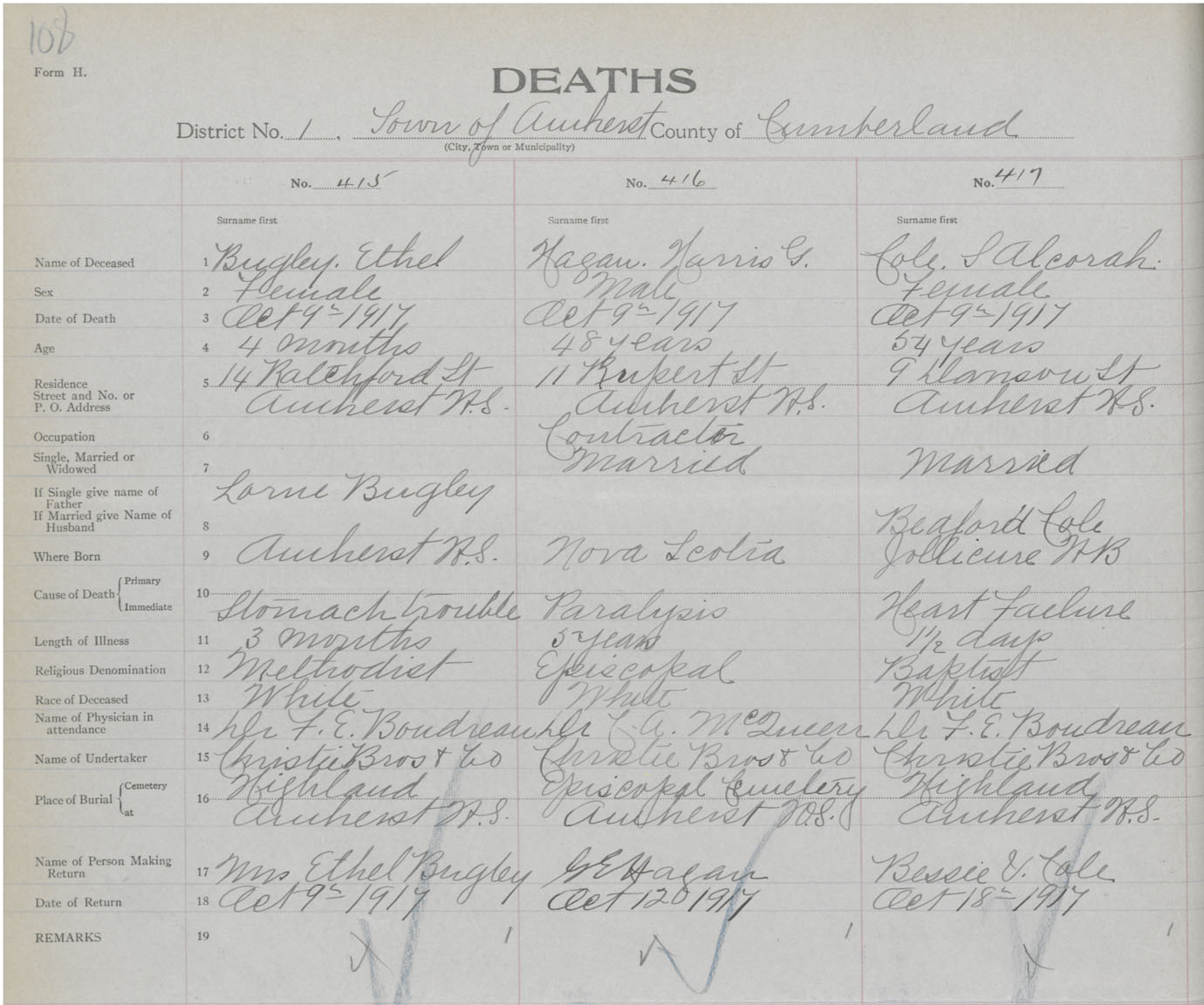 Female Death Registration: Year: 1917 book: 39 page: 108 number: 417