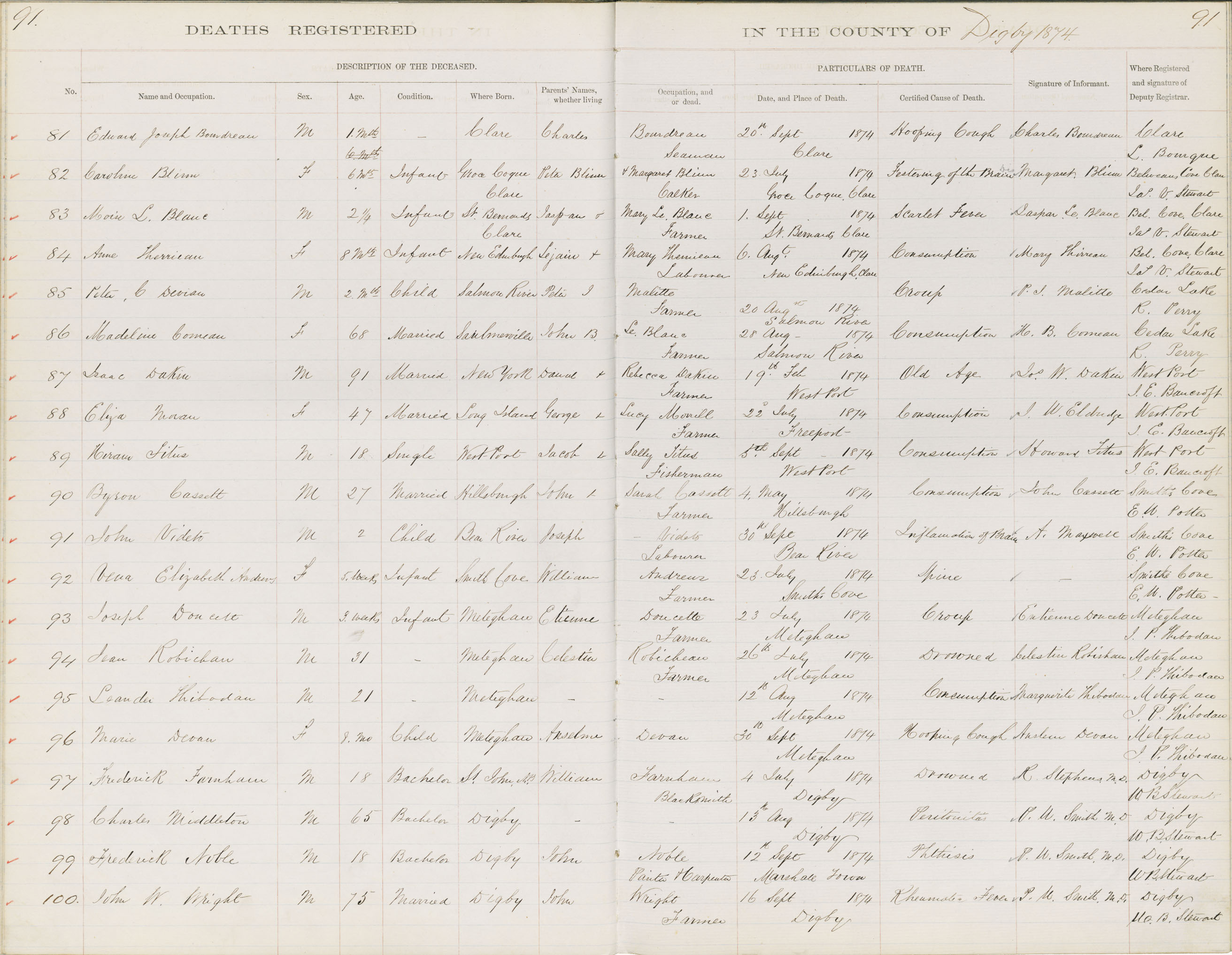 Death Registration: Year: 1874 book: 1806 page: 91 number: 81