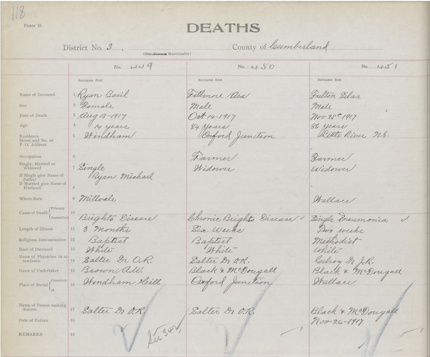 Male Death Registration: Year: 1917 book: 39 page: 118 number: 451