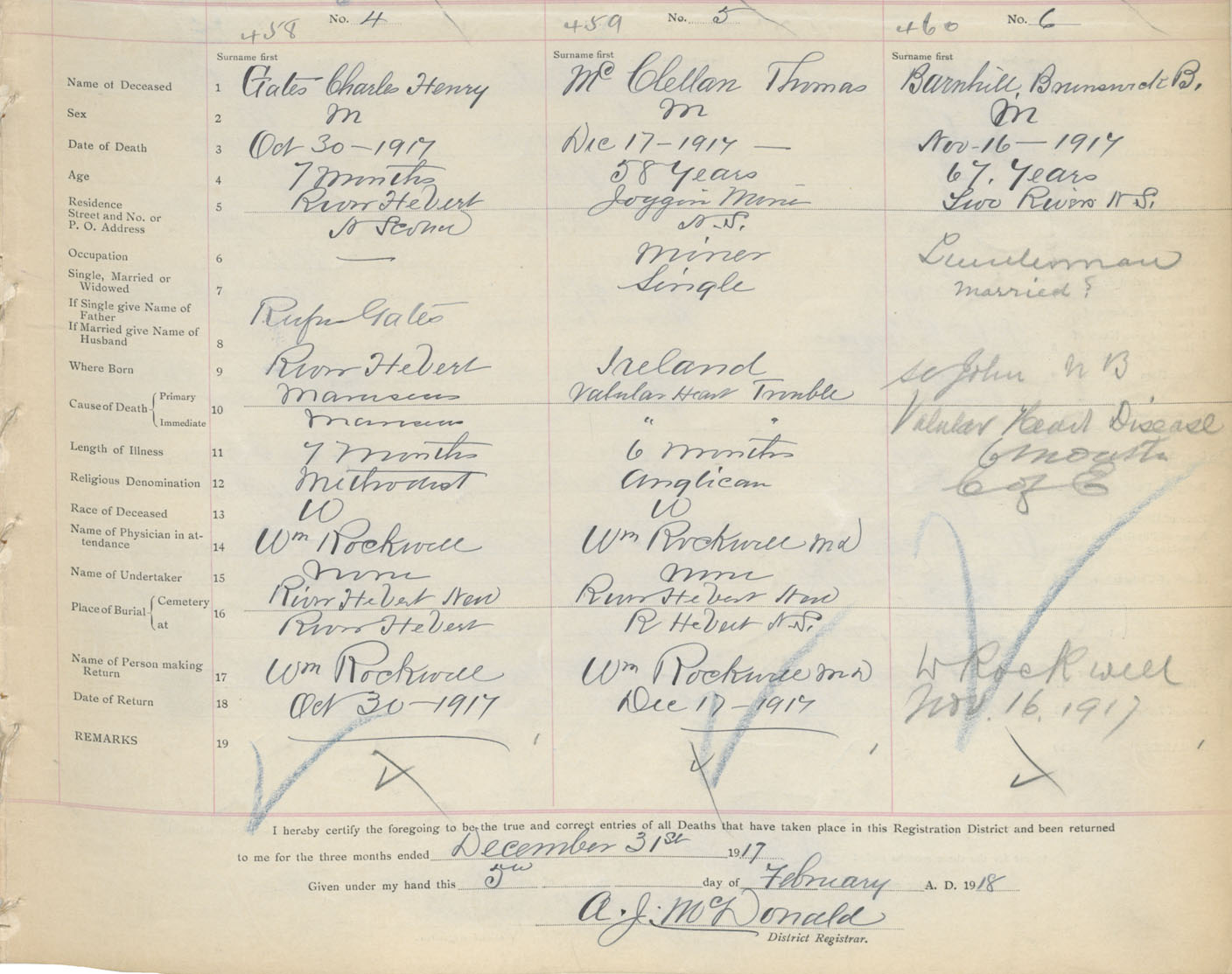 Male Death Registration: Year: 1917 book: 39 page: 119 number: 460