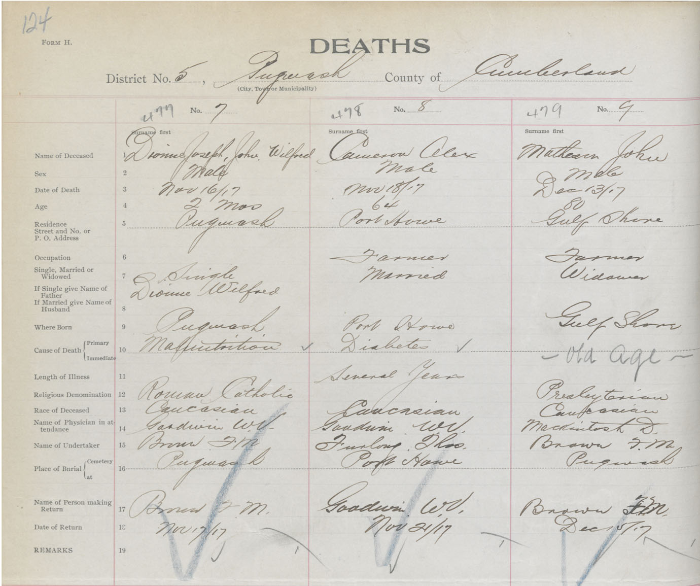 Male Death Registration: Year: 1917 book: 39 page: 124 number: 479