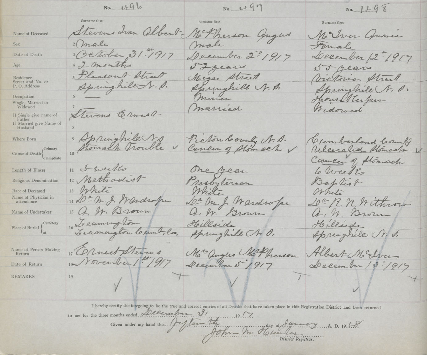 Female Death Registration: Year: 1917 book: 39 page: 128 number: 498