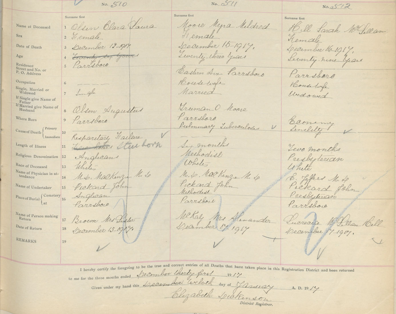 Female Death Registration: Year: 1917 book: 39 page: 133 number: 510