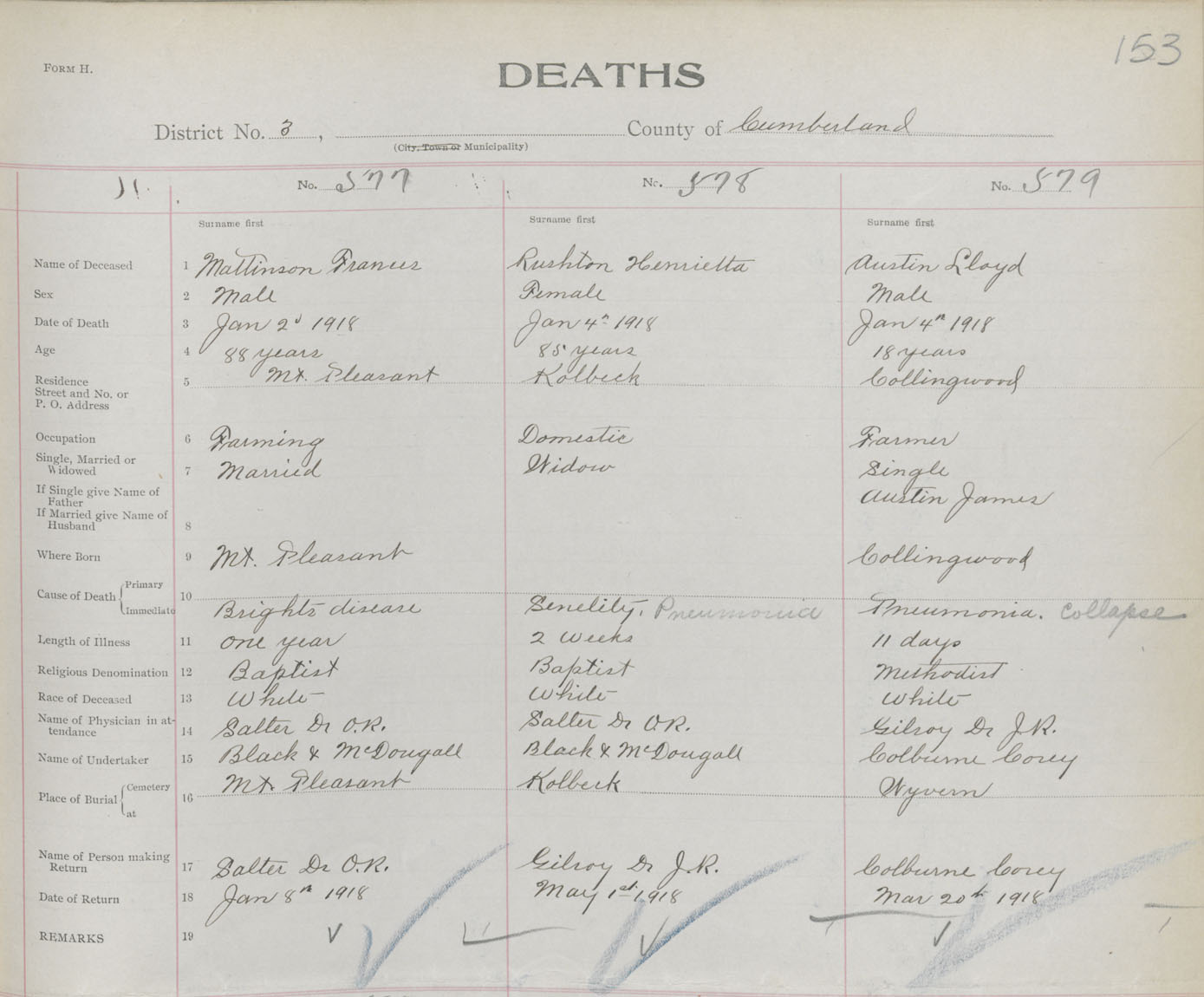 Male Death Registration: Year: 1918 book: 39 page: 153 number: 577
