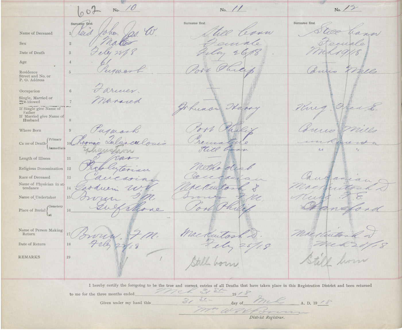 Male Death Registration: Year: 1918 book: 39 page: 158 number: 602