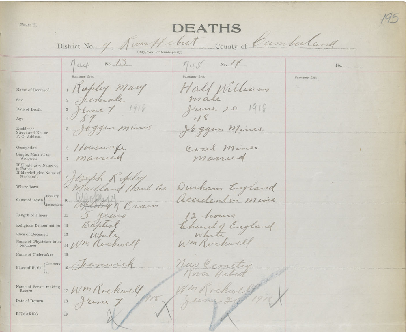 Male Death Registration: Year: 1918 book: 39 page: 195 number: 745