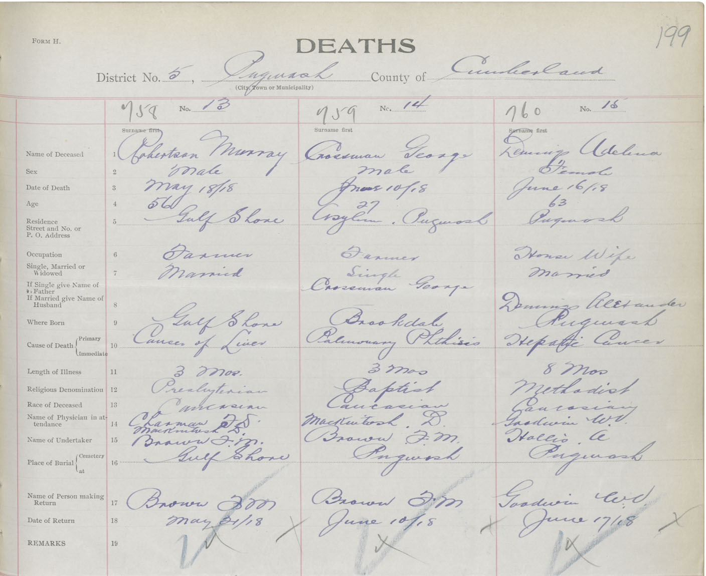 Female Death Registration: Year: 1918 book: 39 page: 199 number: 760