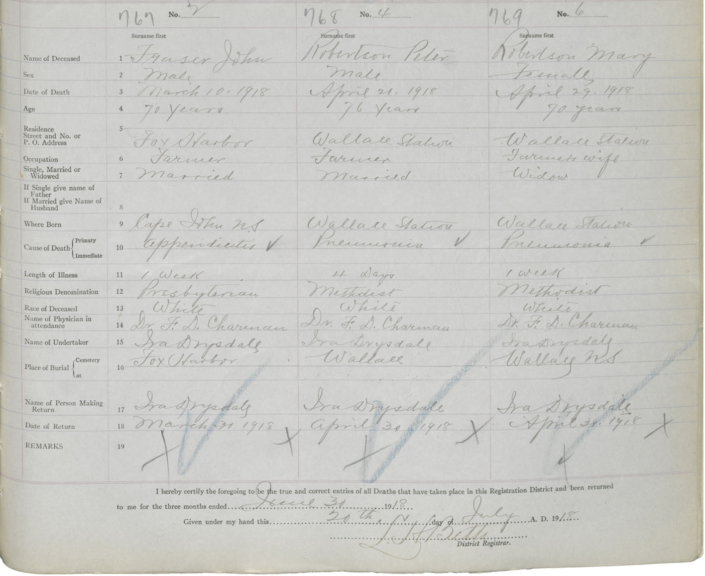 Female Death Registration: Year: 1918 book: 39 page: 201 number: 769