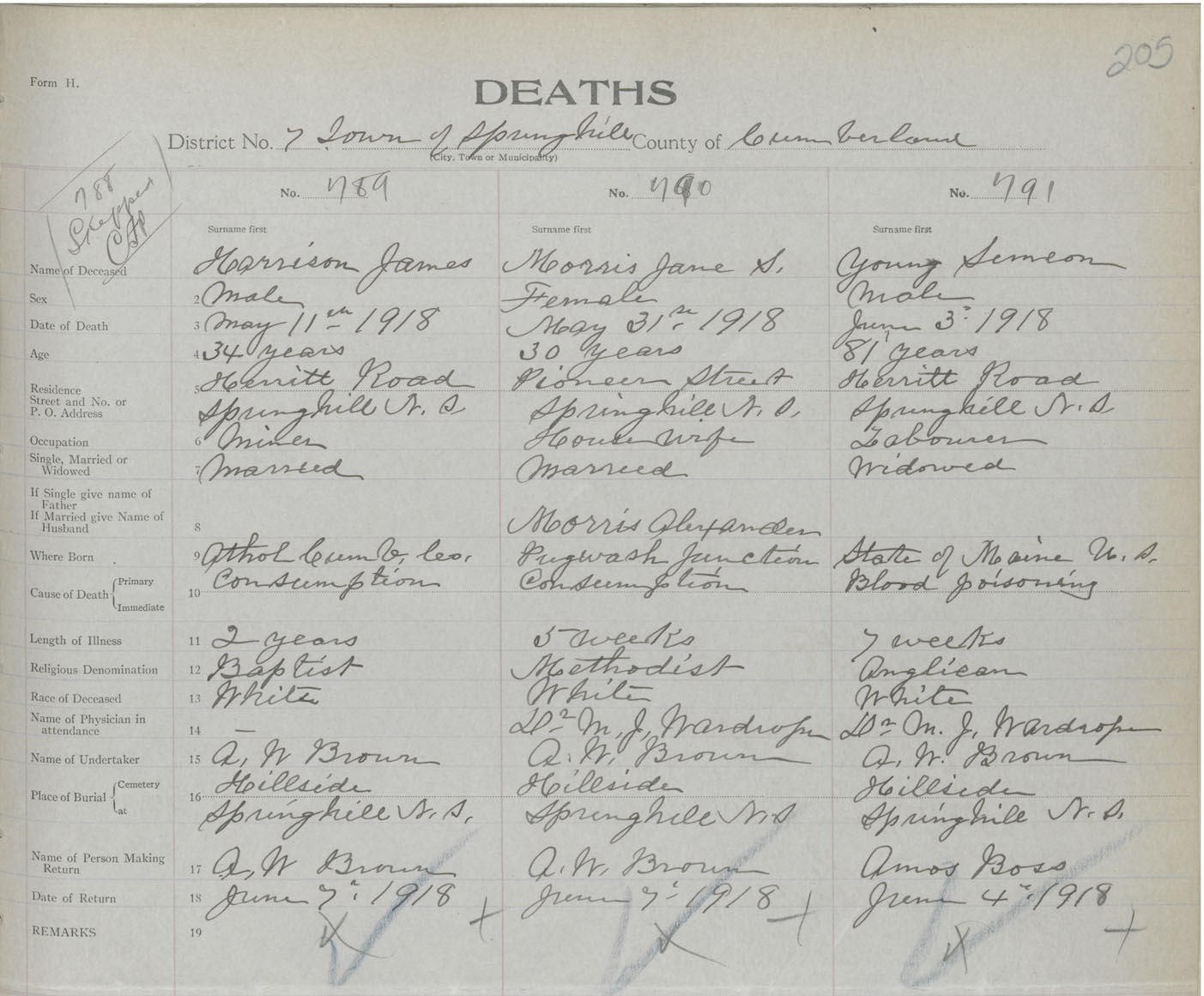 Male Death Registration: Year: 1918 book: 39 page: 205 number: 791