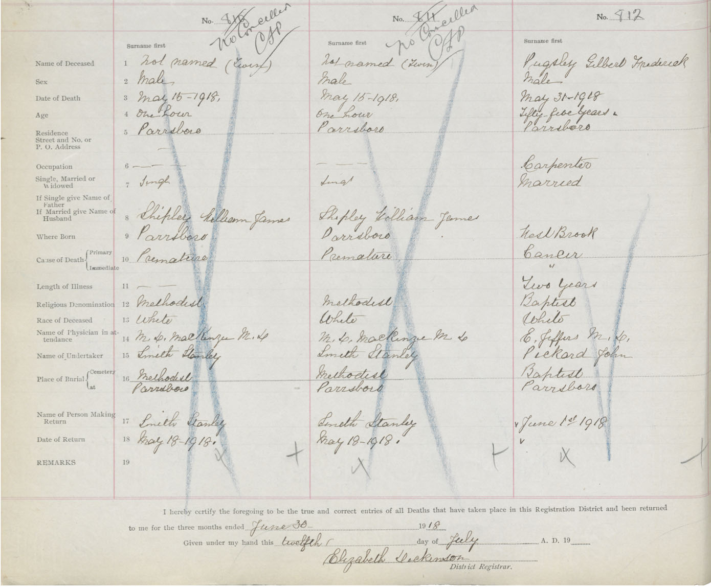 Male Death Registration: Year: 1918 book: 39 page: 210 number: 812