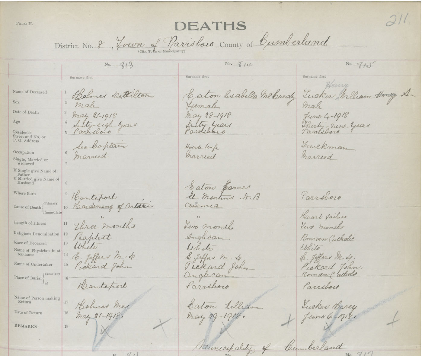 Male Death Registration: Year: 1918 book: 39 page: 211 number: 815