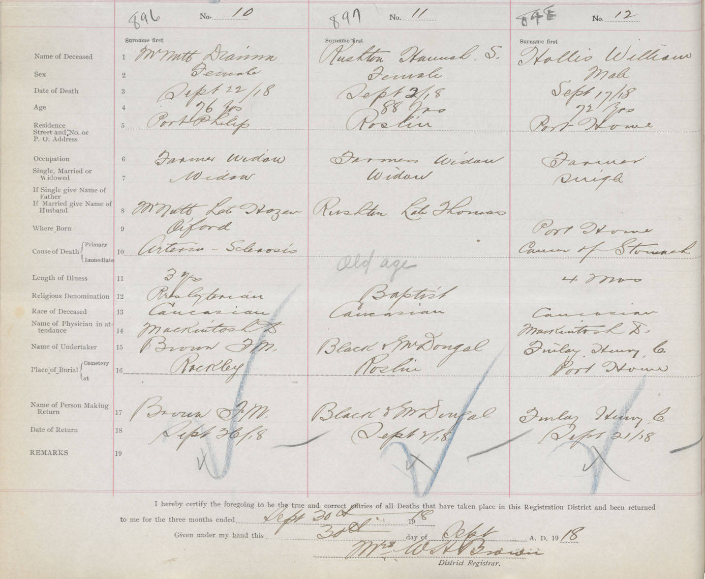 Female Death Registration: Year: 1918 book: 39 page: 232 number: 896