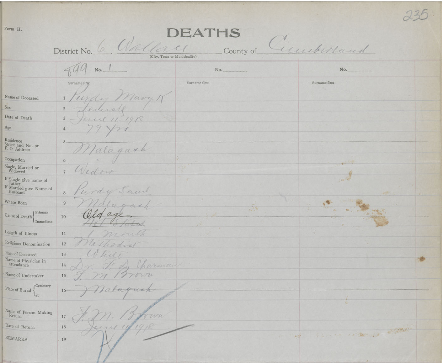 Female Death Registration: Year: 1918 book: 39 page: 235 number: 899