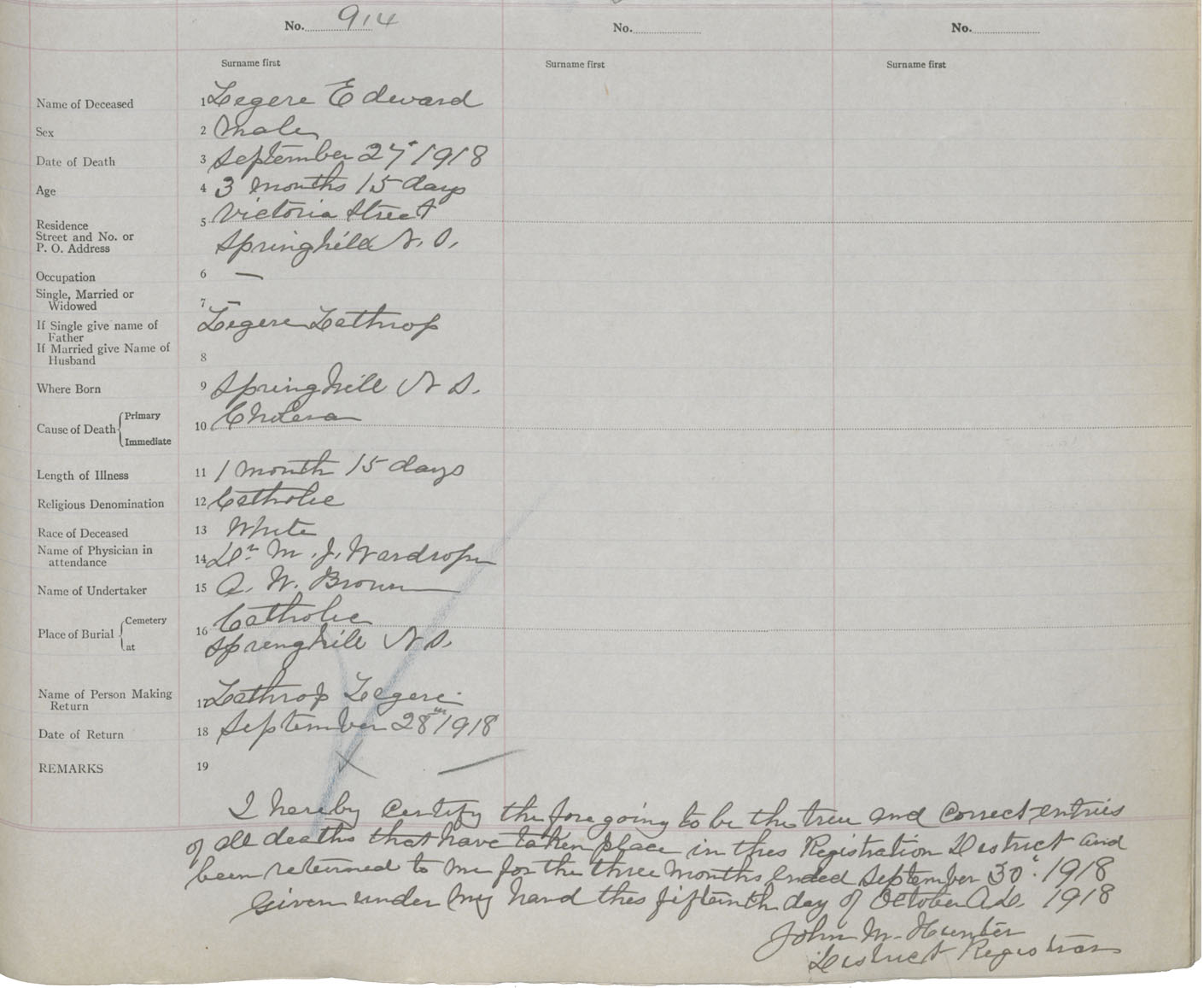 Male Death Registration: Year: 1918 book: 39 page: 239 number: 914