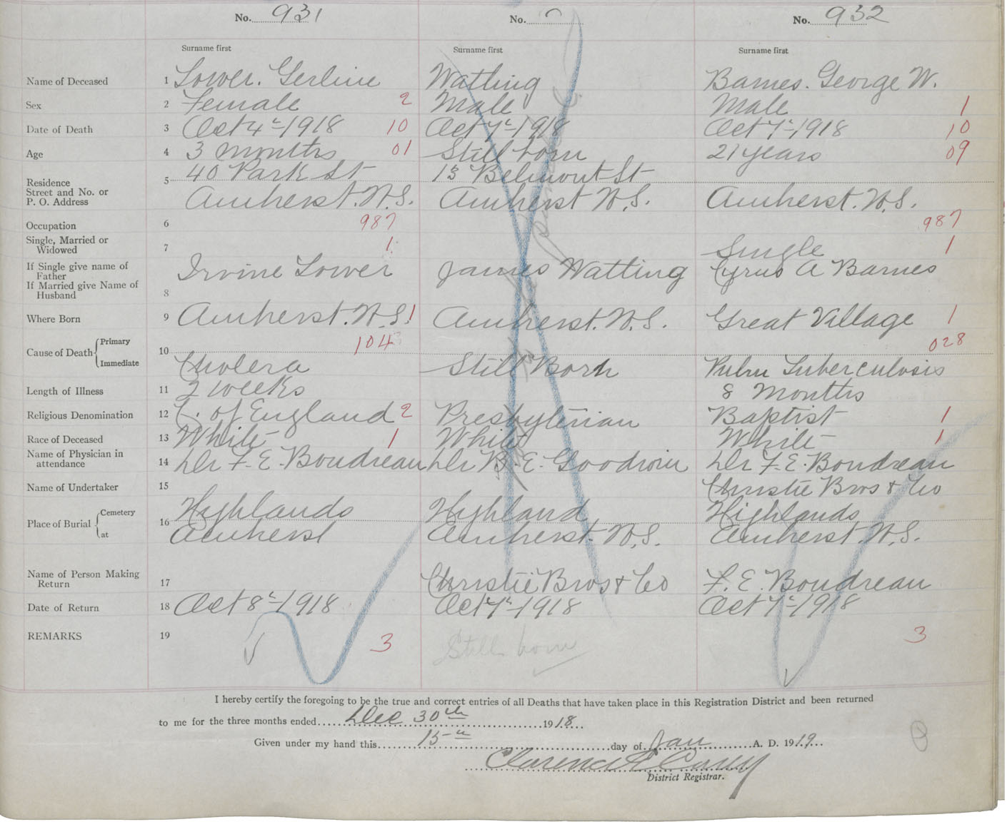 Female Death Registration: Year: 1918 book: 39 page: 247 number: 931