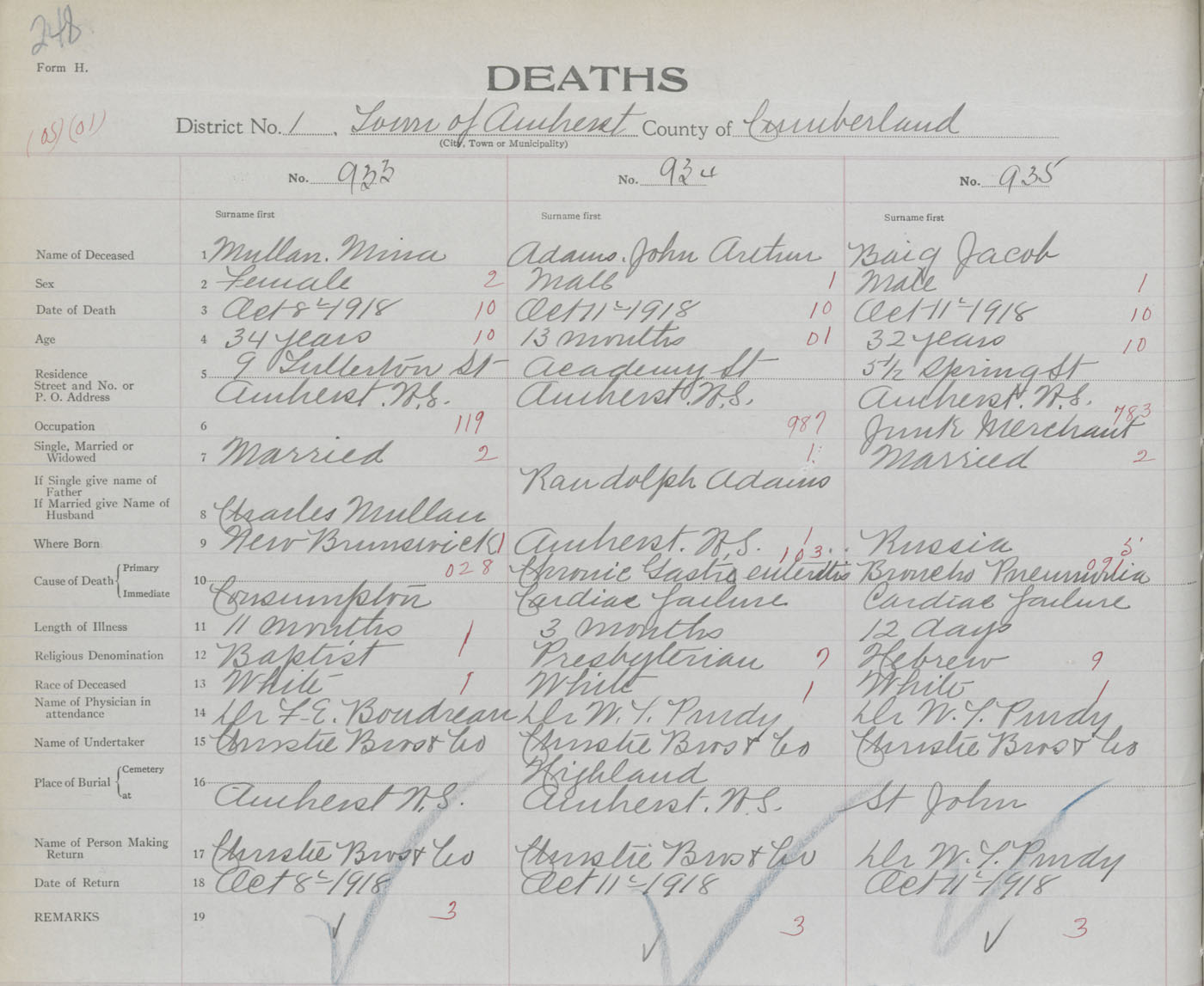 Female Death Registration: Year: 1918 book: 39 page: 248 number: 933