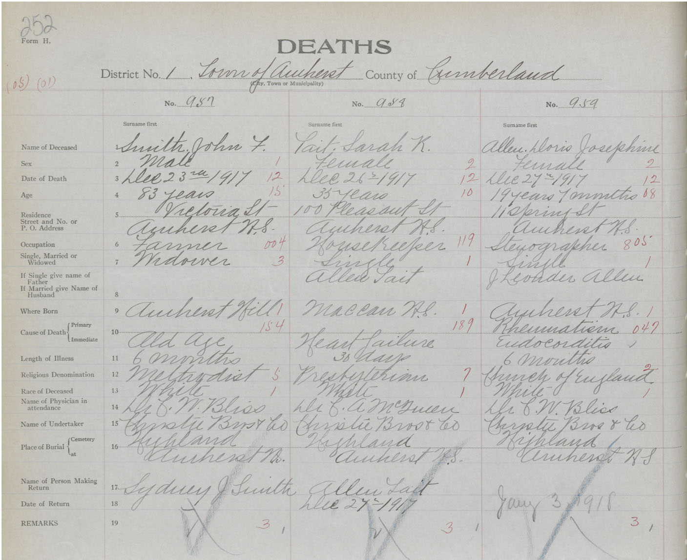 Male Death Registration: Year: 1917 book: 39 page: 252 number: 957