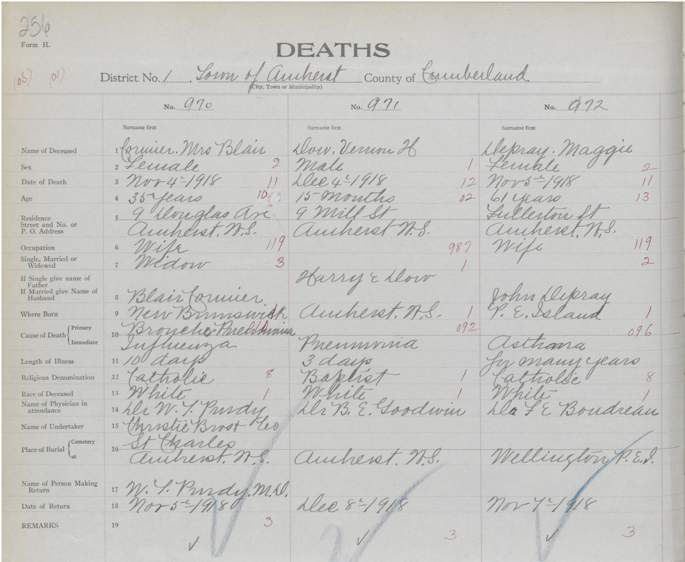 Female Death Registration: Year: 1918 book: 39 page: 256 number: 970
