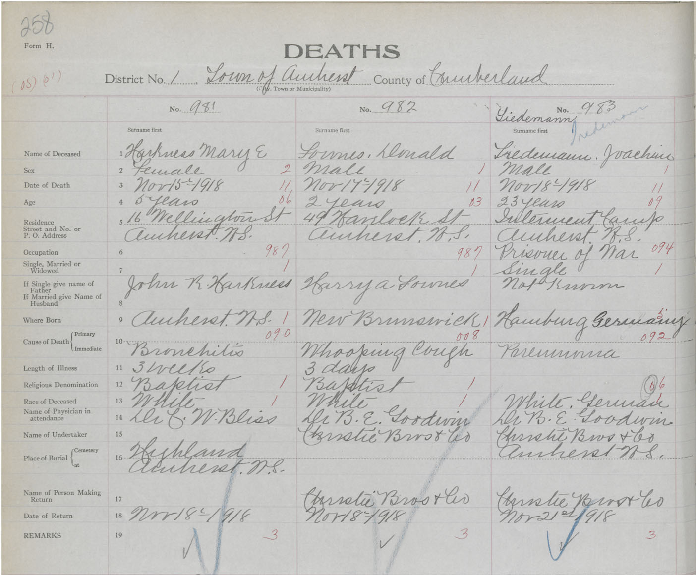 Female Death Registration: Year: 1918 book: 39 page: 258 number: 981