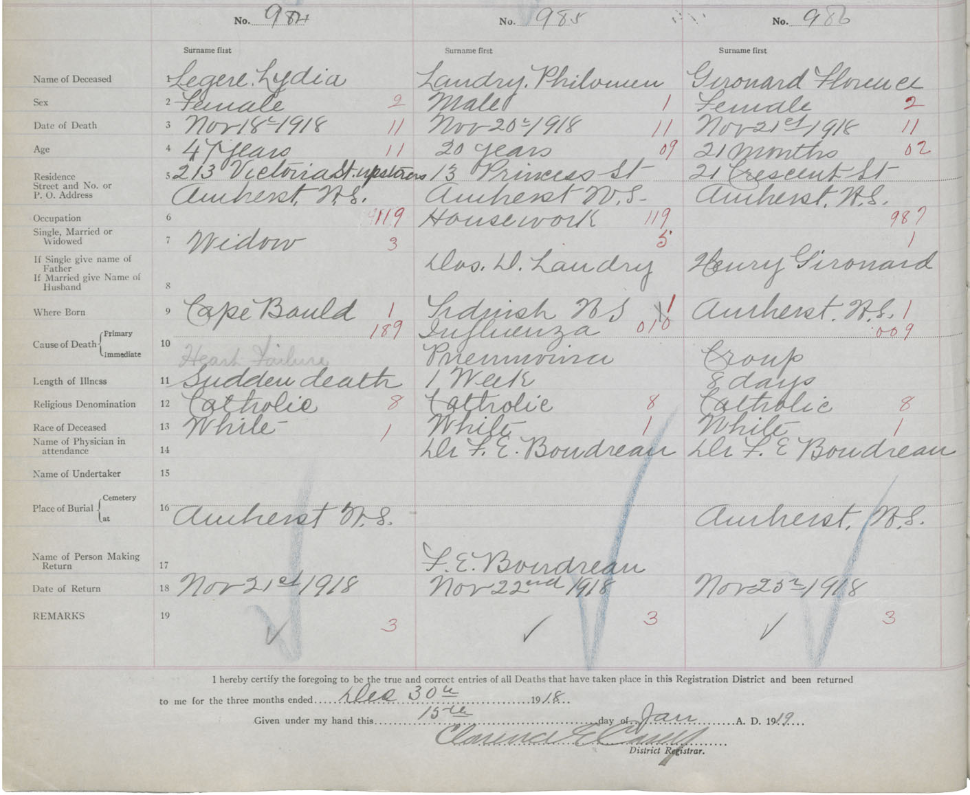 Female Death Registration: Year: 1918 book: 39 page: 258 number: 984