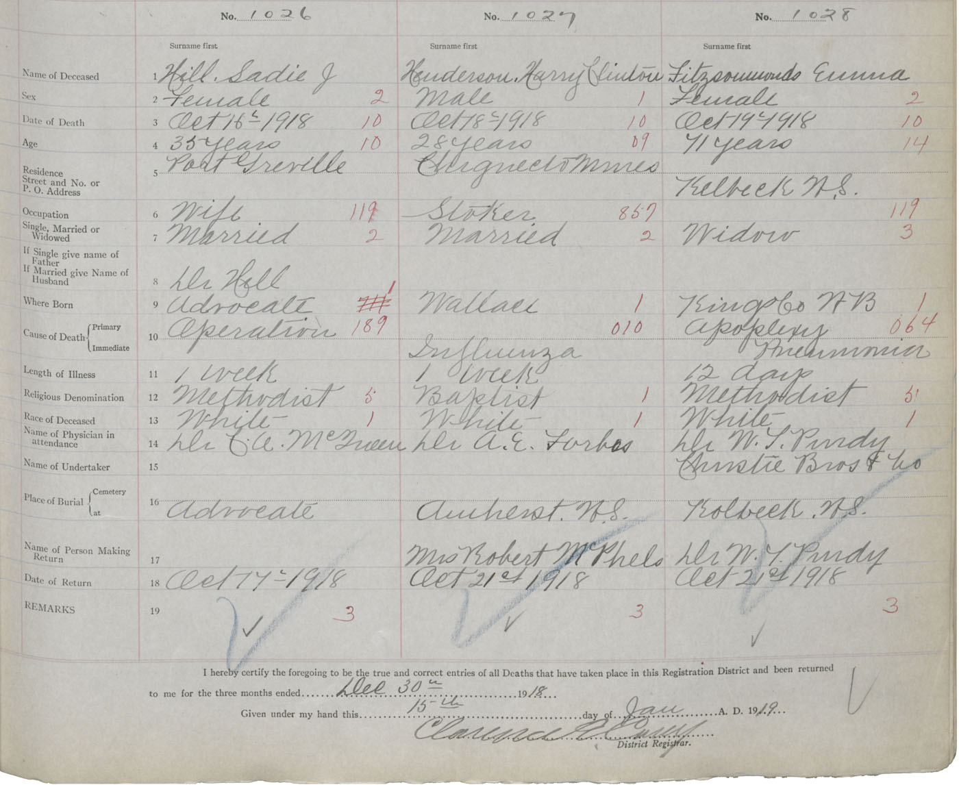 Female Death Registration: Year: 1918 book: 39 page: 265 number: 1026