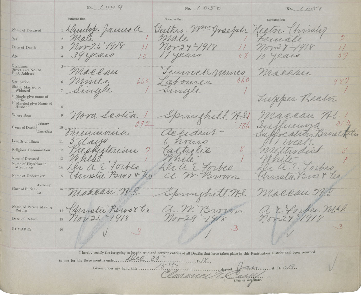 Male Death Registration: Year: 1918 book: 39 page: 269 number: 1049