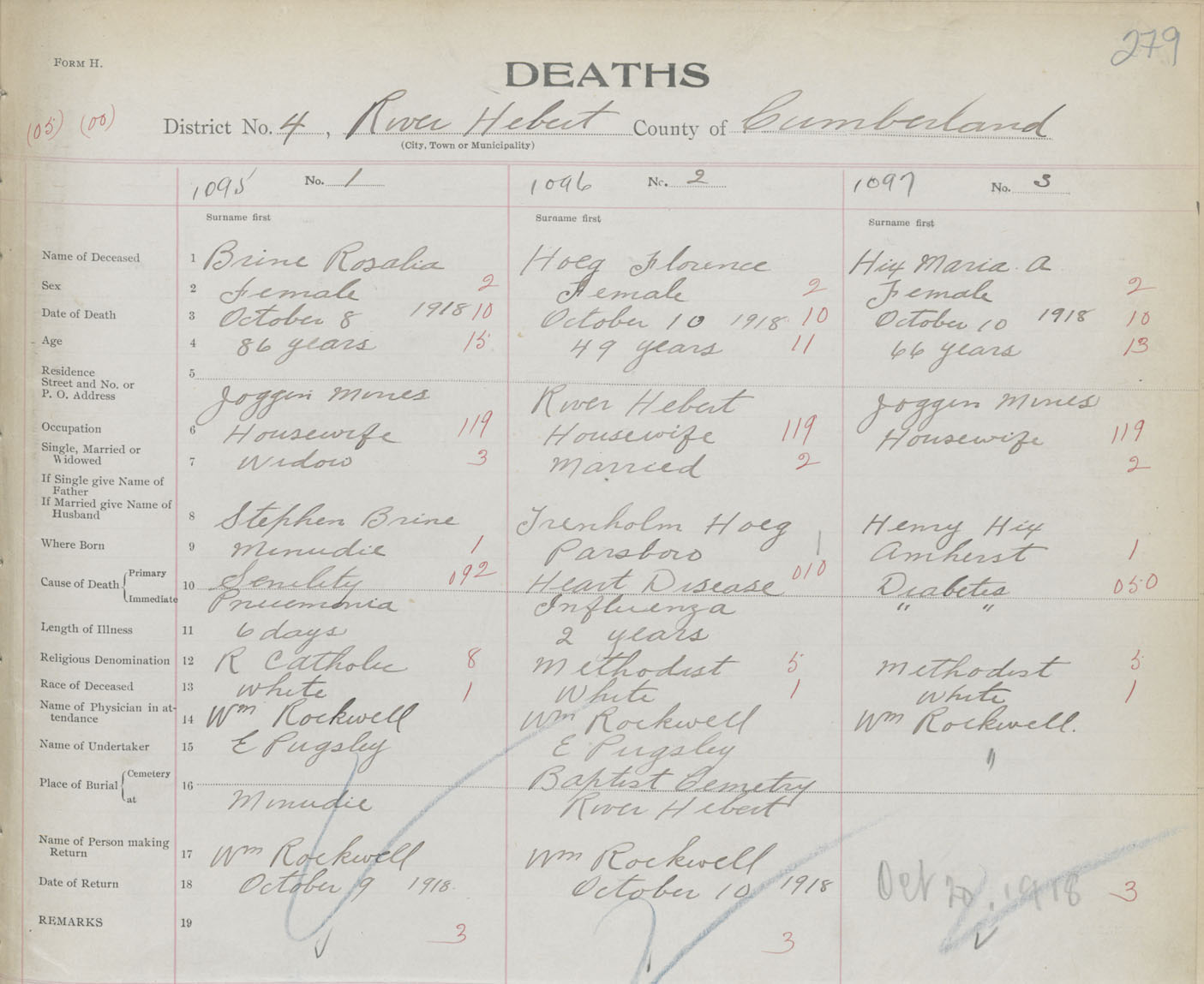 Female Death Registration: Year: 1918 book: 39 page: 279 number: 1095
