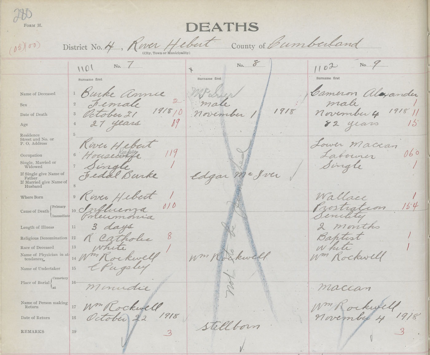 Female Death Registration: Year: 1918 book: 39 page: 280 number: 1101