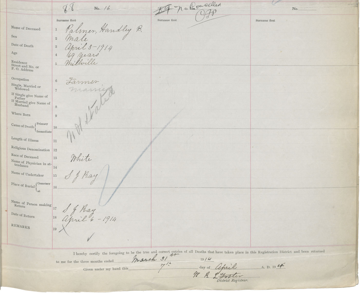 Male Death Registration: Year: 1914 book: 40 page: 21 number: 88