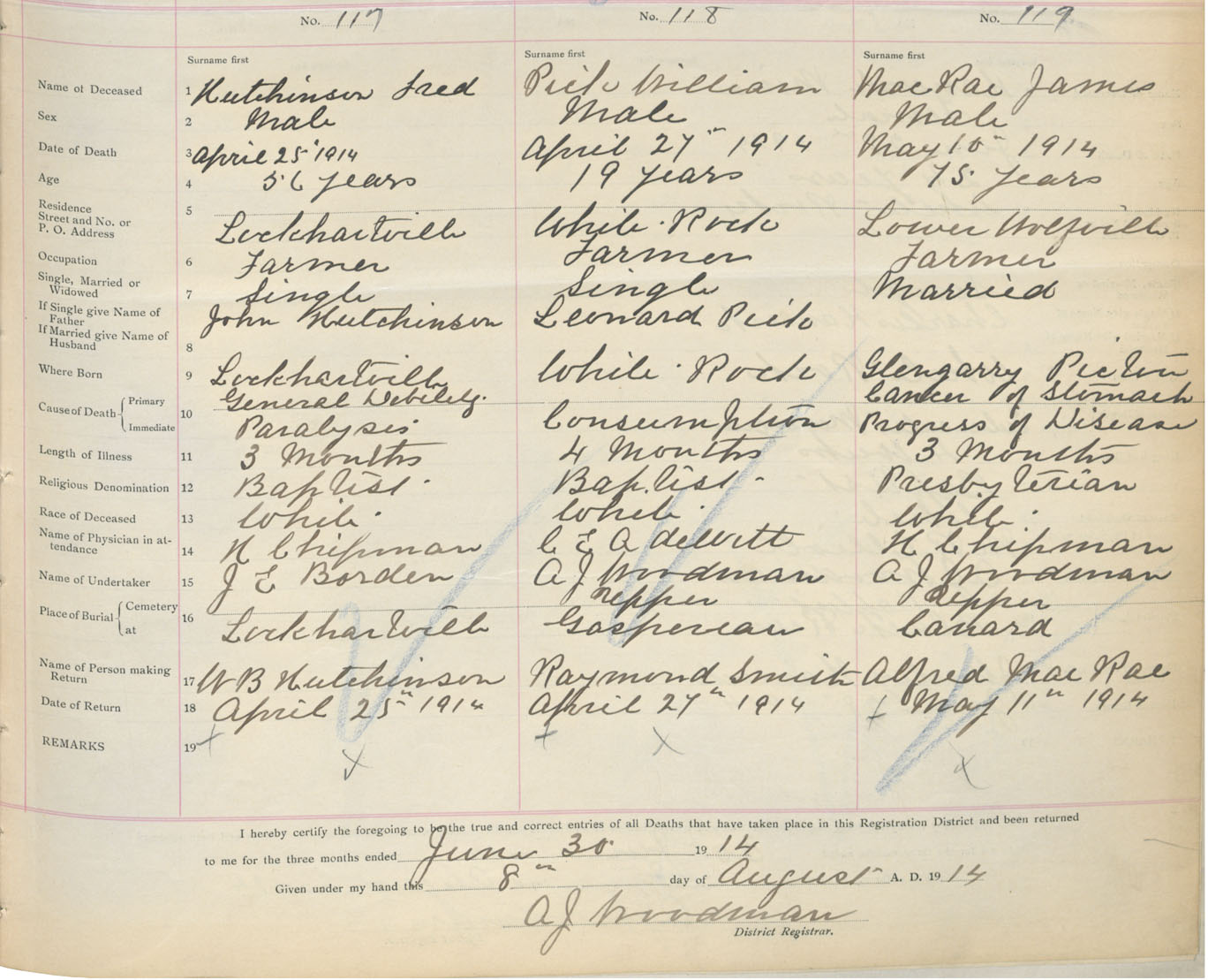 Male Death Registration: Year: 1914 book: 40 page: 31 number: 119