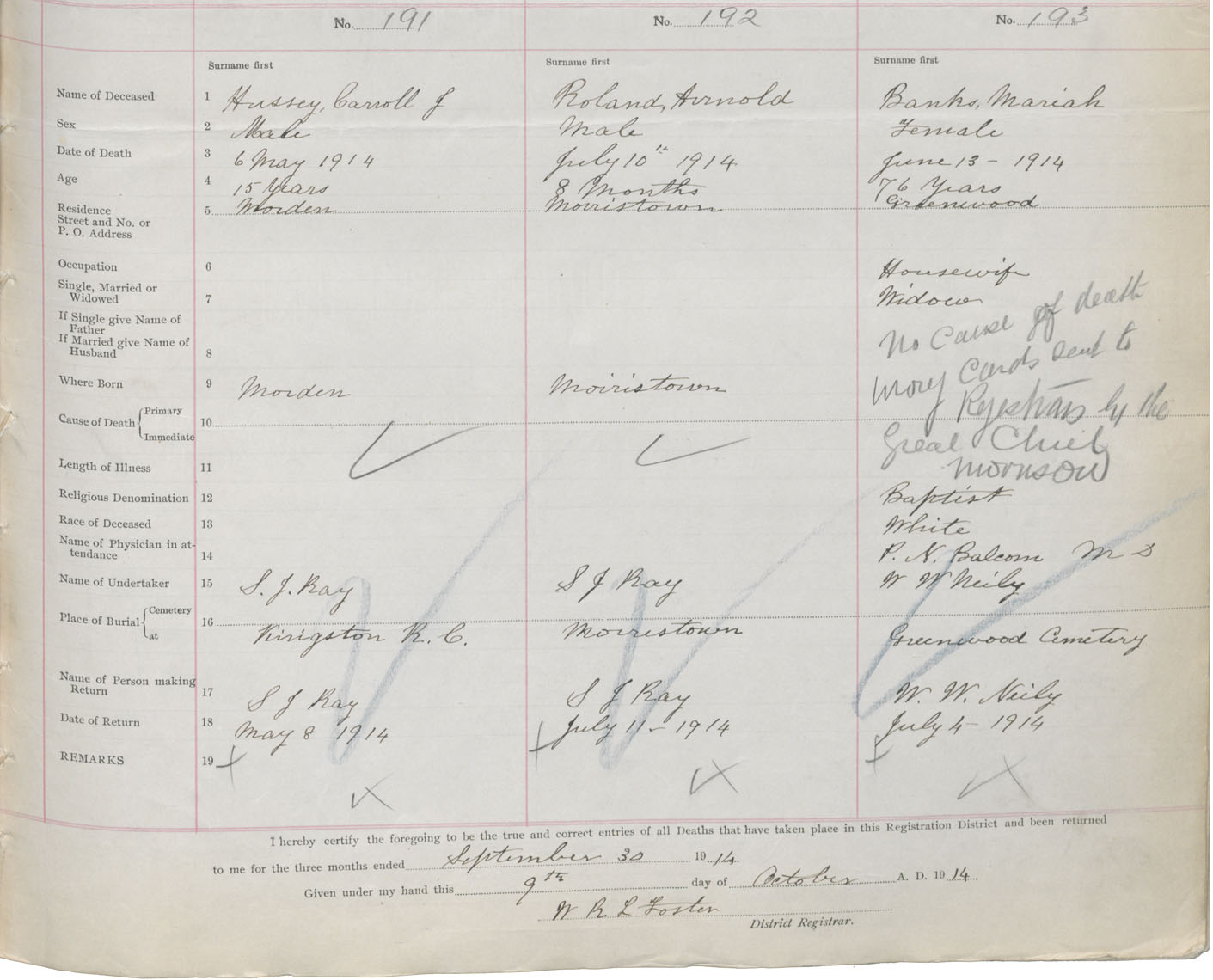 Female Death Registration: Year: 1914 book: 40 page: 51 number: 193