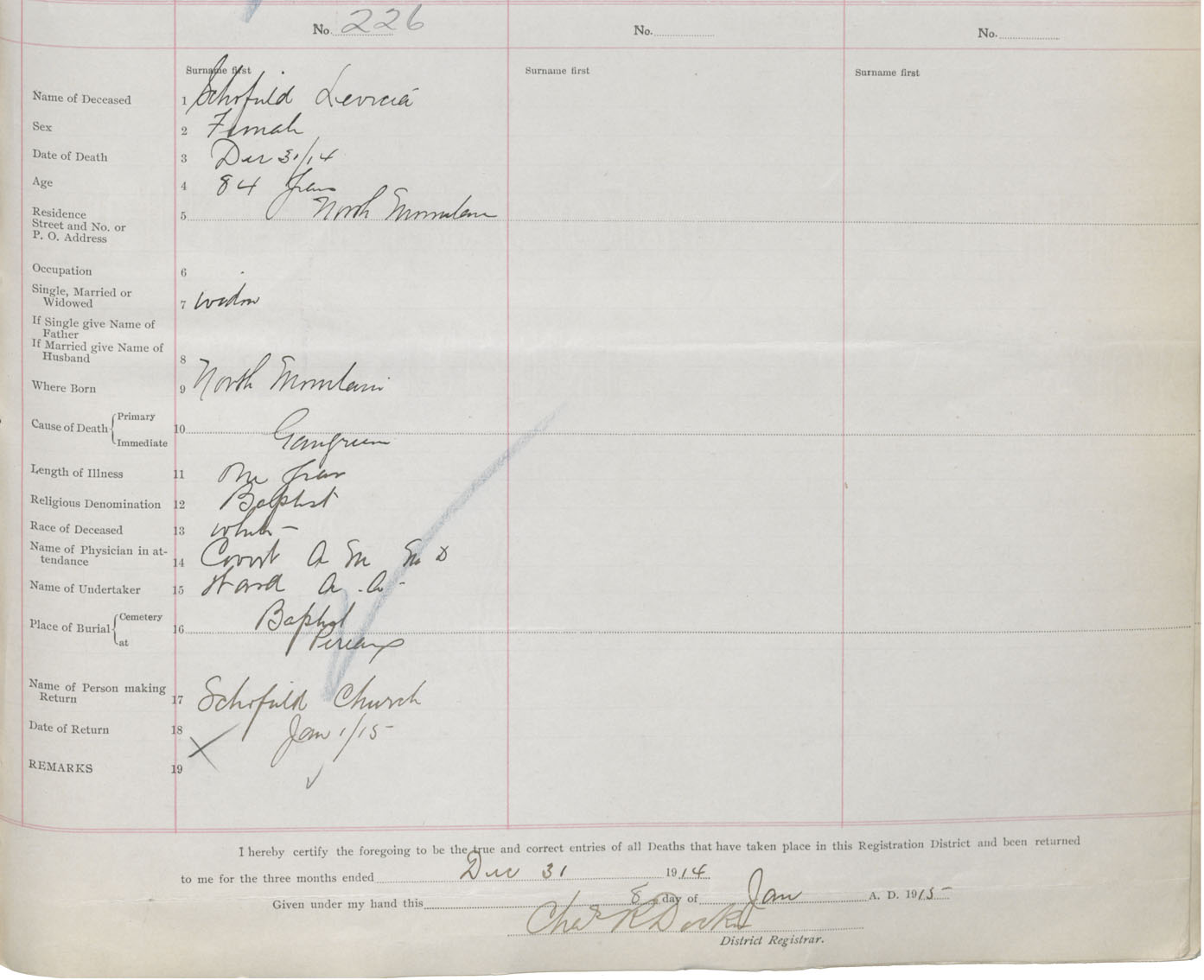 Female Death Registration: Year: 1914 book: 40 page: 59 number: 226