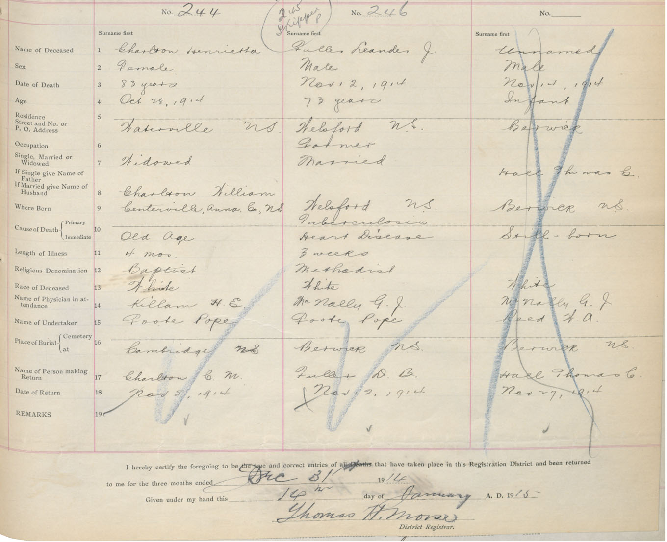 Male Death Registration: Year: 1914 book: 40 page: 67 number: 246