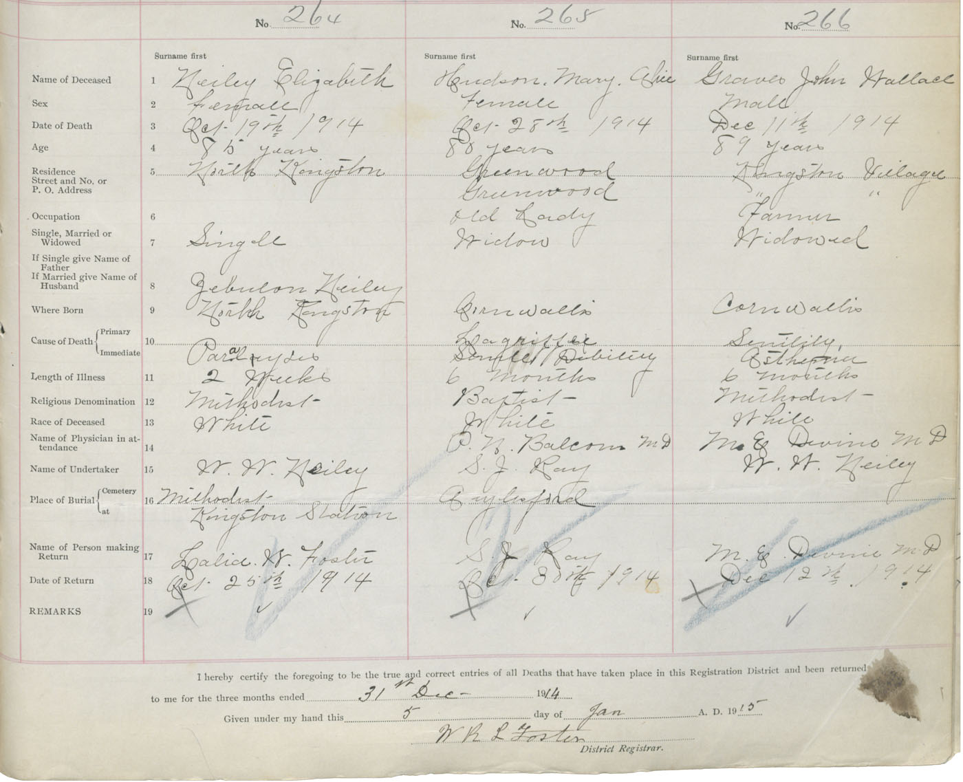 Male Death Registration: Year: 1914 book: 40 page: 71 number: 266