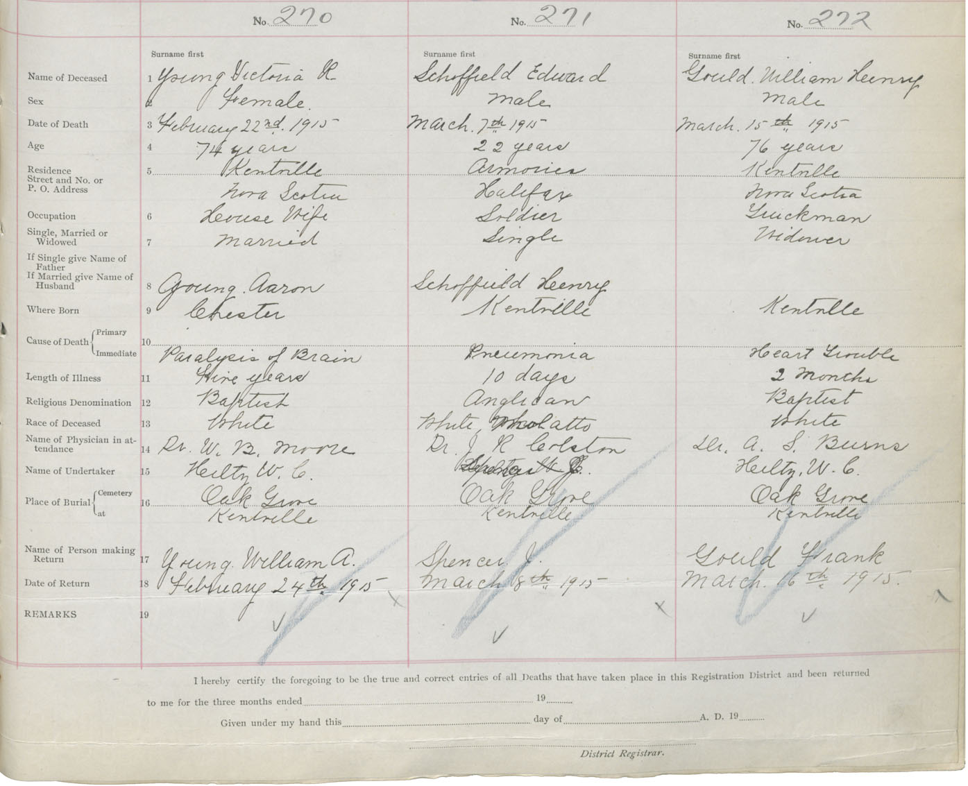 Male Death Registration: Year: 1915 book: 40 page: 73 number: 272
