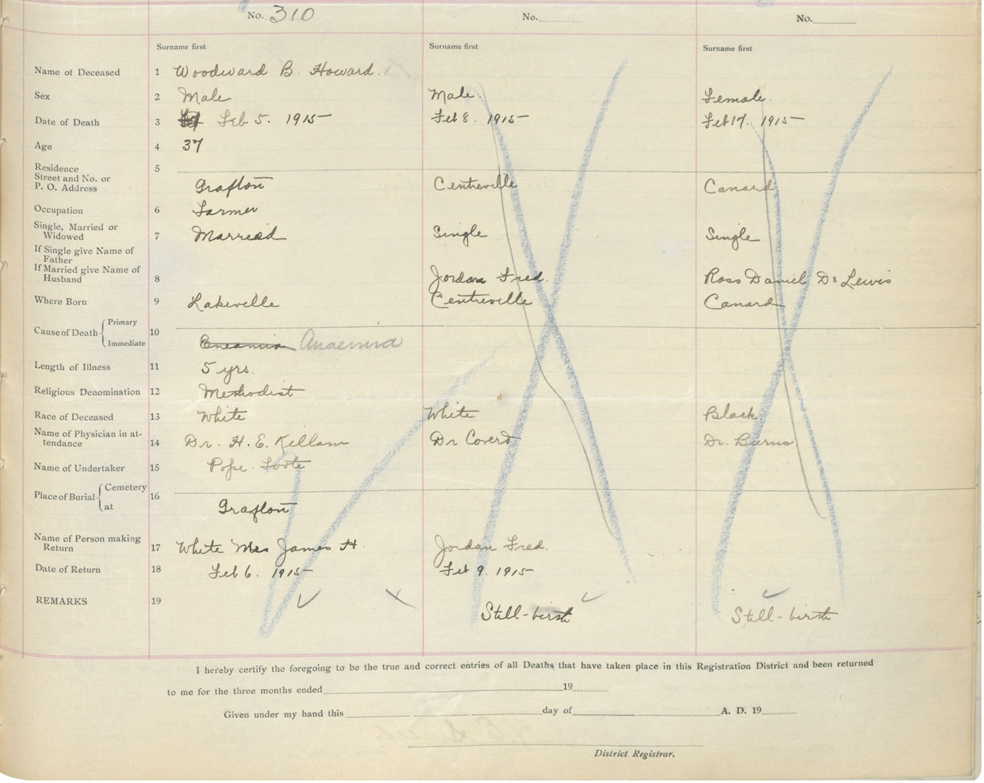 Male Death Registration: Year: 1915 book: 40 page: 83 number: 310