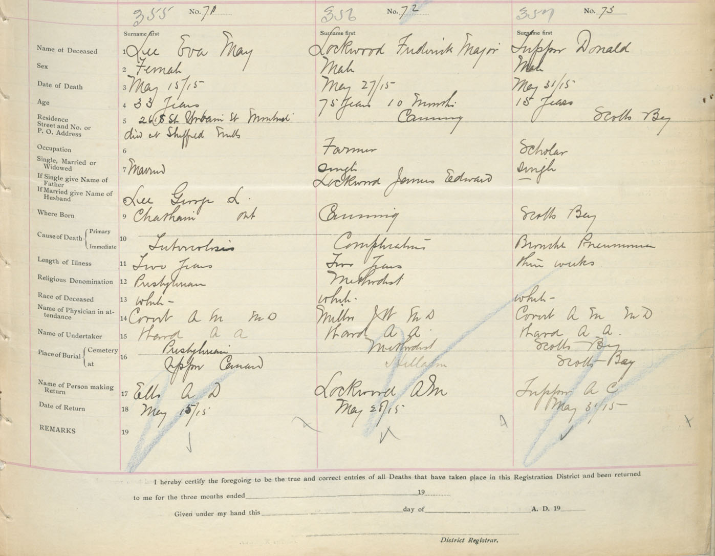 Male Death Registration: Year: 1915 book: 40 page: 93 number: 357